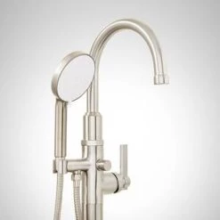 Budget π Signature Hardware Veyo Three Handle Cross Floor Mount Filler in Brushed Nickel π€©