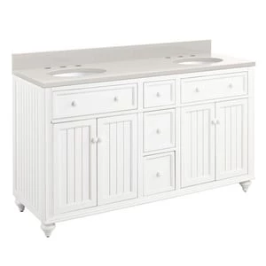 Coupon π€© Signature Hardware Cottage 60 in. Floor Mount Vanity in Distressed Chalk White βοΈ